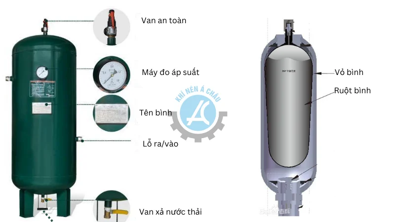 Bình tích khí nén có 2 phần chính: